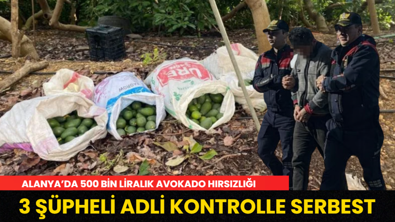 Alanya'nın Okurcalar Mahallesi’nde bir avokado bahçesinden yaklaşık 500 bin TL değerinde ürün çaldıkları belirlenen 3 şüpheli, jandarma ekiplerince yakalandı. Jandarmada'ki işlemlerinin ardından adliyeye sevk edilen şüpheliler adli kontrol şartıyla serbest bırakıldı.