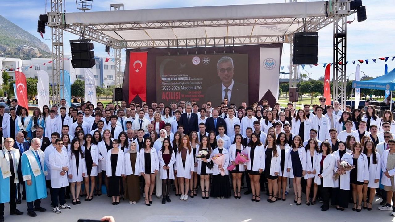 Alanya Alaaddin Keykubat Üniversitesi (ALKÜ) 2025-2026 Akademik Yılı Açılış Töreni, İlk Ders ve Tıp Fakültesi Beyaz Önlük Giyme Töreni dün Kestel Amfitiyatro’da düzenlendi. Sağlık Bakanı Prof. Dr. Kemal Memişoğlu’nun ilk dersi verdiği etkinlik, ALKÜ’nün 10’uncu yıl tanıtım filmiyle başladı ve tıp öğrencilerinin beyaz önlük giymesiyle sona erdi.KATILIMCILAR VE PROGRAM AKIŞITörene Antalya Vali Yardımcısı Salih Yüce, AK Parti Antalya Milletvekili Dr. Tuba Vural Çokal, İl Sağlık Müdürü Prof. Dr. Behçet Özkan, Alanya Kaymakamı Dr. Şakir Öner Öztürk, Alanya Belediye Başkanı Osman Tarık Özçelik, ALKÜ Rektörü Prof. Dr. Kenan Ahmet Türkdoğan, STK ve siyasi parti temsilcileri, kurum başkanları, hayırseverler, akademik-idari personel, öğrenciler, aileleri ve vatandaşlar katıldı.