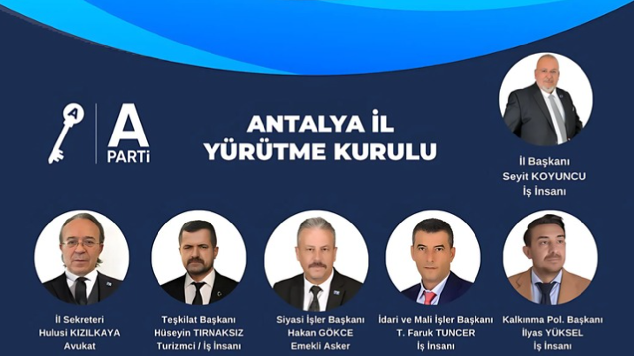 Anahtar Parti Antalya İl Başkanı Seyit Koyuncu liderliğinde oluşturulan Yürütme Kurulu’nda, farklı alanlarda uzmanlaşmış isimler yer alıyor. İşte kadroda bulunan bazı önemli isimler ve görevleri: