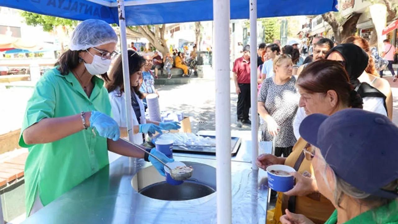 Antalya Büyükşehir Belediyesi, Muharrem ayı vesilesiyle gelenekselleşen aşure ikramlarına başladı. Muratpaşa Kapalıyol ve Alanya’da ikram edilen aşureye vatandaşlar yoğun ilgi gösterdi.ANTALYA (İGFA) - Antalya Büyükşehir Belediyesi’nin her yıl düzenlediği ve geleneksel hale getirdiği aşure ikramı bu yıl da sürdürülüyor. Antalya Büyükşehir Belediyesi Sosyal Hizmetler Dairesi Başkanlığı’na bağlı aşevlerinde özenle hazırlanan aşurelerin ilk dağıtım noktaları, merkezde Kapalıyol ve Alanya’da Atatürk Anıtı önü oldu. Kurulan dağıtım stantlarında Kapalıyol’da 3 bin, Alanya’da ise 2 bin kişiye aşure ikram edildi. Aşureye vatandaşların ilgisi yoğun oldu. Aşureyi tadan vatandaşlar ve yabancı ziyaretçiler, bu kadim lezzete tam not verirken memnuniyetlerini de dile getirdi.