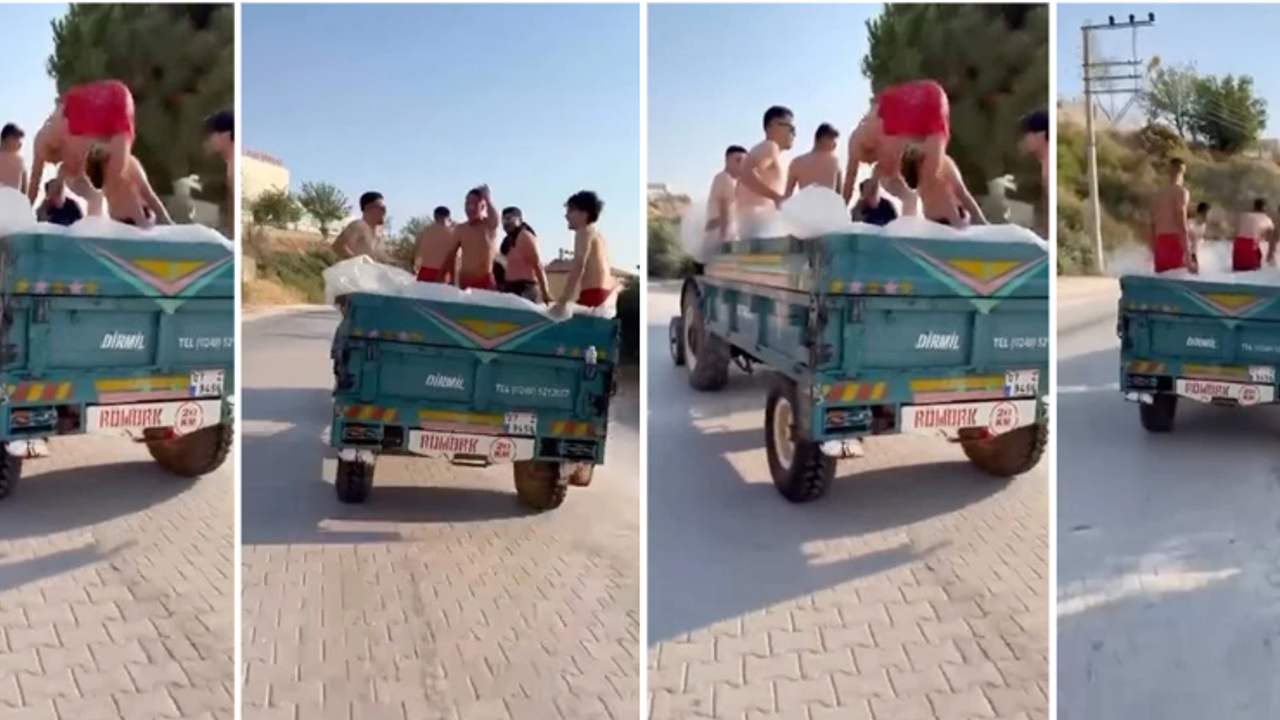 Demre'de sıcak havalardan bunalan bir grup genç, traktörün römorkunu suyla doldurup mobil havuza çevirdi ardından da şehir turu attı. Gençlerin sıcak havada tehlikeli serinliği cep telefonu kameralarına yansıdı. Görüntülerde gençlerin römork içindeki suyun keyfini çıkarırken aynı zamanda traktörle mahalle turu attığı anlar sosyal medyada hem ilgi hem de tepki gördü. Mahalle sakinlerinin şaşkın ve gülümseyen bakışları arasında geçen mobil havuz turu şans eseri kaza yaşanmadan sona erdi.