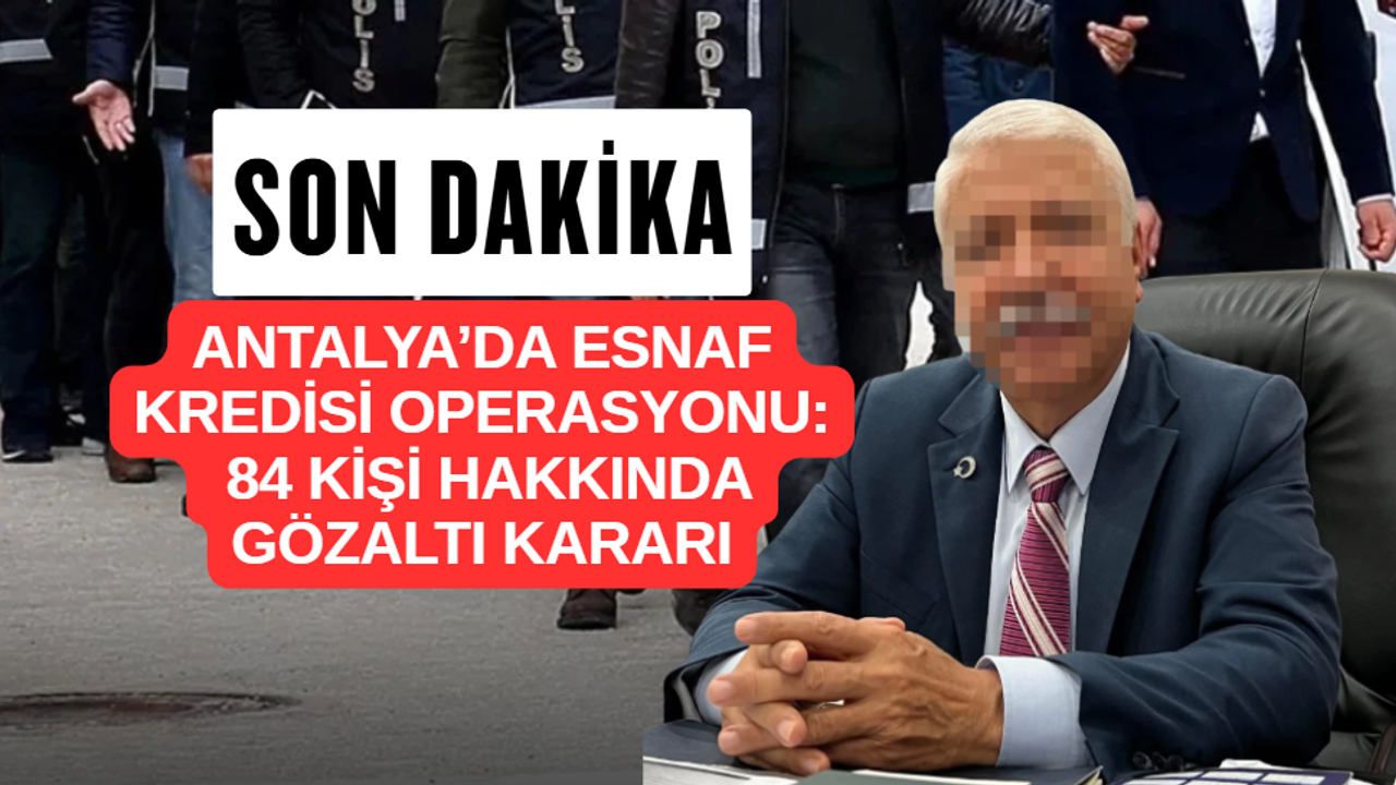 Antalya Cumhuriyet Başsavcılığı’nın talimatıyla Antalya’da esnaf kredilerine yönelik geniş çaplı operasyon düzenlendi. Aralarında esnaf kredi kooperatifi başkanı ile eski oda başkanının da bulunduğu 84 kişi hakkında gözaltı kararı verildi.