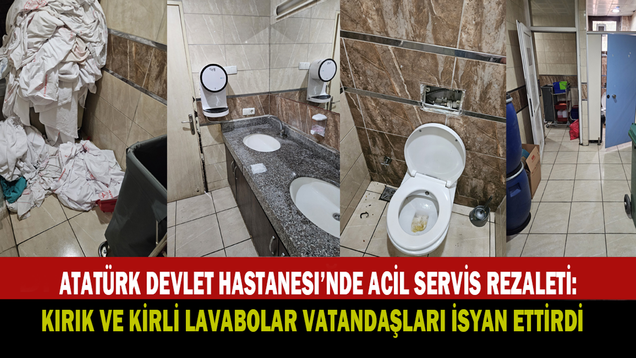 Atatürk Devlet Hastanesi’nin acil servisindeki tuvalet ve lavabolar, temizlik ve bakım eksikliği nedeniyle adeta kullanılamaz halde. Vatandaşlar, lavaboların kırık olduğunu, temizlik yapılmadığını ve peçeteliklerin boş kaldığını ifade ediyor. Bir hasta yakını, “Temizlik görevlisine söyledik, pas olduğunu belirtti. Plastik malzeme ne zamandan beri pas tutuyor? Şikayet ettik ama umarız bir iyileşme olur” diyerek tepkisini dile getirdi. Temizlenmeyen tuvaletlerden yayılan pis koku, acil servisin genelinde hissedilirken, tahlil için temiz lavabo ihtiyacı olan hastalar zor durumda kalıyor.