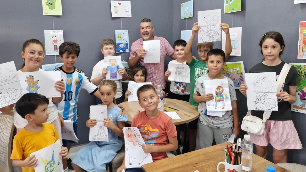 22-24 Ağustos tarihleri arasında Kırlangıç Yaşam Merkezi’nde minik sanatçılarla buluşan Murat Asın, üç gün boyunca karikatür çizmenin temel tekniklerini öğretirken çocukların yaratıcılıklarını ortaya çıkarmalarına da rehberlik etti.