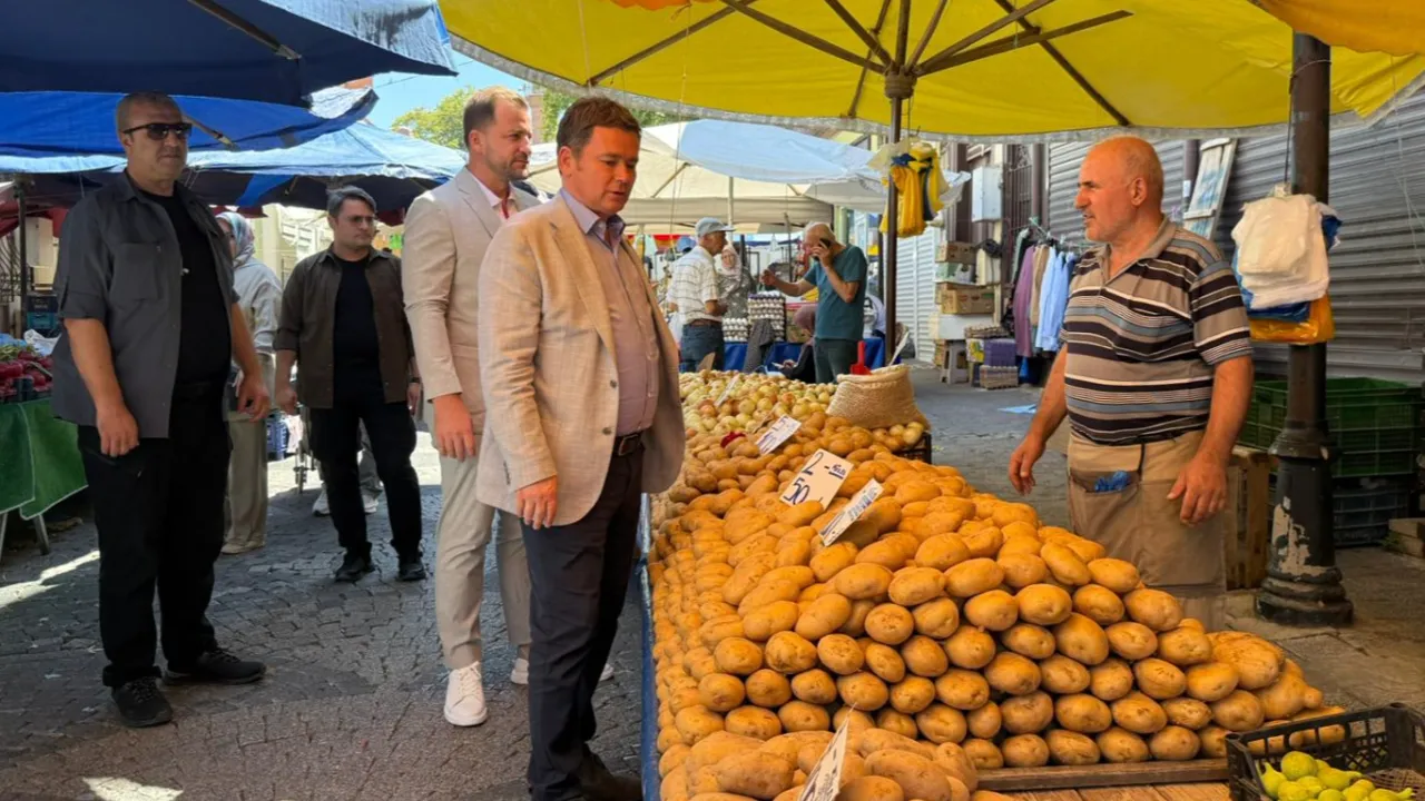 Osmangazi Belediye Başkanı Erkan Aydın, Muradiye Mahallesi’ndeki pazar yerini ziyaret ederek hem esnaf hem de vatandaşla sohbet etti, sorunları yerinde dinledi. Başkan Aydın, artan fiyatlar karşısındaki şikâyetlere kulak verdi.BURSA (İGFA) - Osmangazi Belediye Başkanı Erkan Aydın, Muradiye Mahallesi’nde salı günleri kurulan pazar yerini ziyaret ederek pazarcı esnafı ve vatandaşlarla bir araya geldi. Esnafa ‘hayırlı işler’ dileğinde bulunan Başkan Aydın, hem tezgâh başındaki esnafın sorunlarını hem de alışveriş yapan vatandaşların taleplerini dinledi.