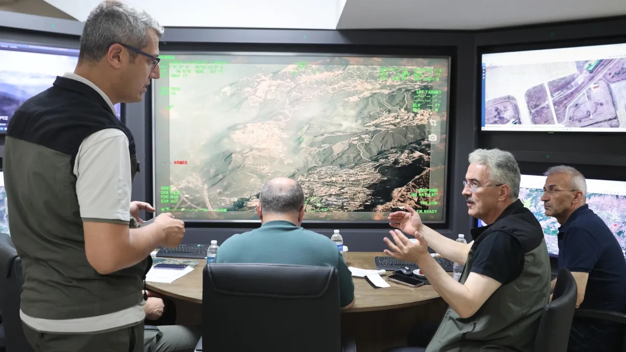Tarım ve Orman Bakan Yardımcısı Prof. Dr. Ahmet Gümen, Bursa Valisi Erol Ayyıldız, Bursa Milletvekili Mustafa Varank, İl Emniyet Müdürü ve İl Jandarma Komutanı, Bursa Orman Bölge Müdürlüğü Yangın Harekât Merkezi’nde bir araya gelerek yangınla mücadele çalışmalarını koordine ediyor.