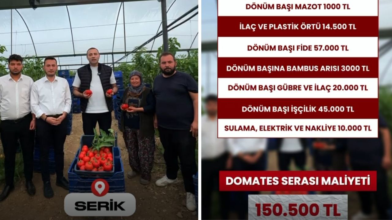 Serik’te domates üreticilerini ziyaret eden CHP Antalya Milletvekili Aykut Kaya, artan girdi maliyetleri nedeniyle çiftçilerin ayakta kalmasının zorlaştığını vurguladı. Kaya, üretim maliyetlerini tek tek hesaplayarak kamuoyuyla paylaştı.
