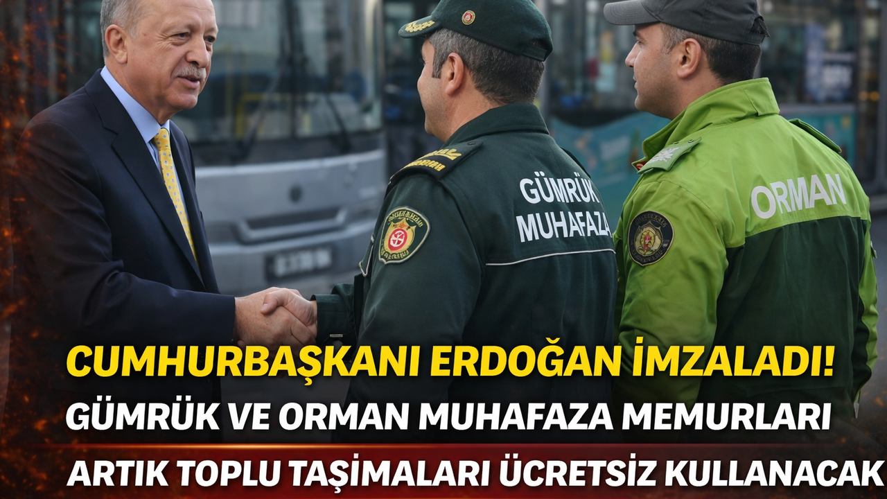 Cumhurbaşkanı Recep Tayyip Erdoğan, gümrük muhafaza memurları ile orman muhafaza memurlarının belediyelere ait toplu taşıma araçlarından ücretsiz yararlanması kararını imzaladı. Karar, Resmi Gazete’de yayımlanarak bugün itibarıyla yürürlüğe girdi.