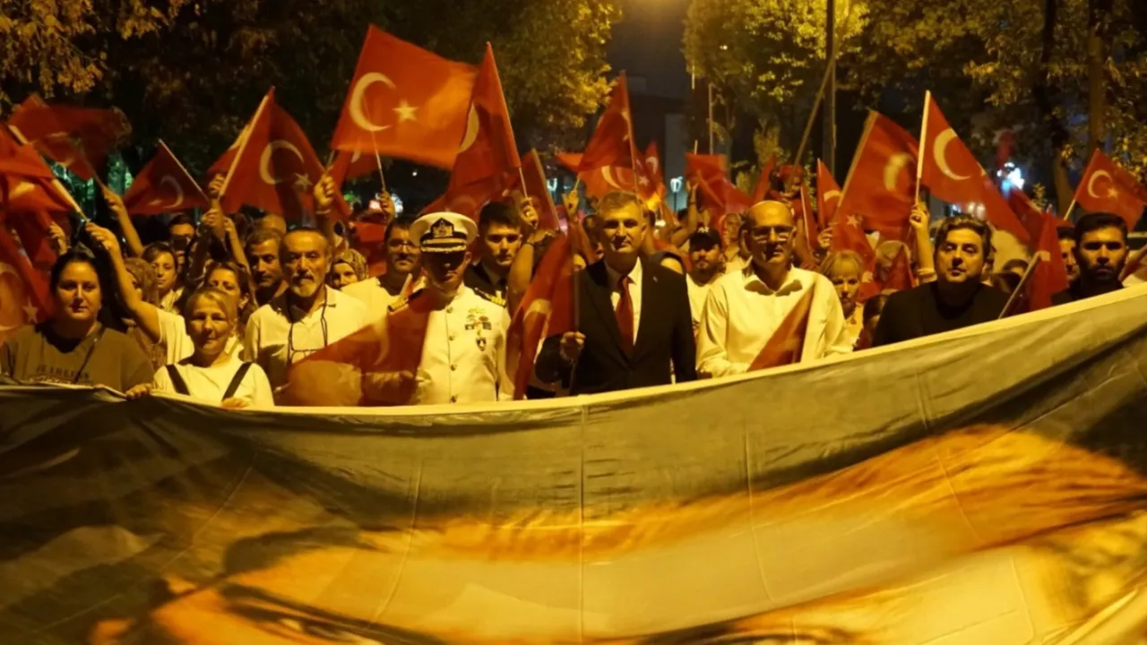 Kocaeli Gölcük’te 30 Ağustos Zafer Bayramı’nın 103. yıl dönümü, düzenlenen tören ve fener alayında coşku ile kutlandı.KOCAELİ (İGFA) - 30 Ağustos Zafer Bayramı kutlamaları kapsamında Kavaklı’da bulunan Gölcük Belediyesi Kongre Sarayı önünden Anıtpark’a doğru fener alayı yürüyüşü düzenlendi. İzcilerin ellerindeki fenerler ve meşaleleri ile Gölcük caddelerini aydınlattığı yürüyüş, marşlar eşliğinde Anıtpark’a ulaştı.