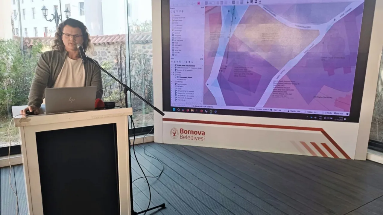 İzmir'in Bornova ilçesinin köklü geçmişi artık dijital bir haritada hayat buluyor. Bornova Belediyesi Müze Müdürlüğü’nün desteklediği proje, farklı dönemlere ait haritaları üst üste oturtarak ilçedeki değişimi gözler önüne seriyor.İZMİR (İGFA) - Yerel araştırmacı Mark Giraud, 10 kuşaktır Bornovalı olan ailesinin arşivlerinden ve Bornovalıların katkılarıyla hazırladığı “Bornova Kentsel Miras Haritası” projesini Dramalılar Köşkü’nde düzenlenen “Taşların Hafızası Söyleşi Serisi” kapsamında tanıttı.