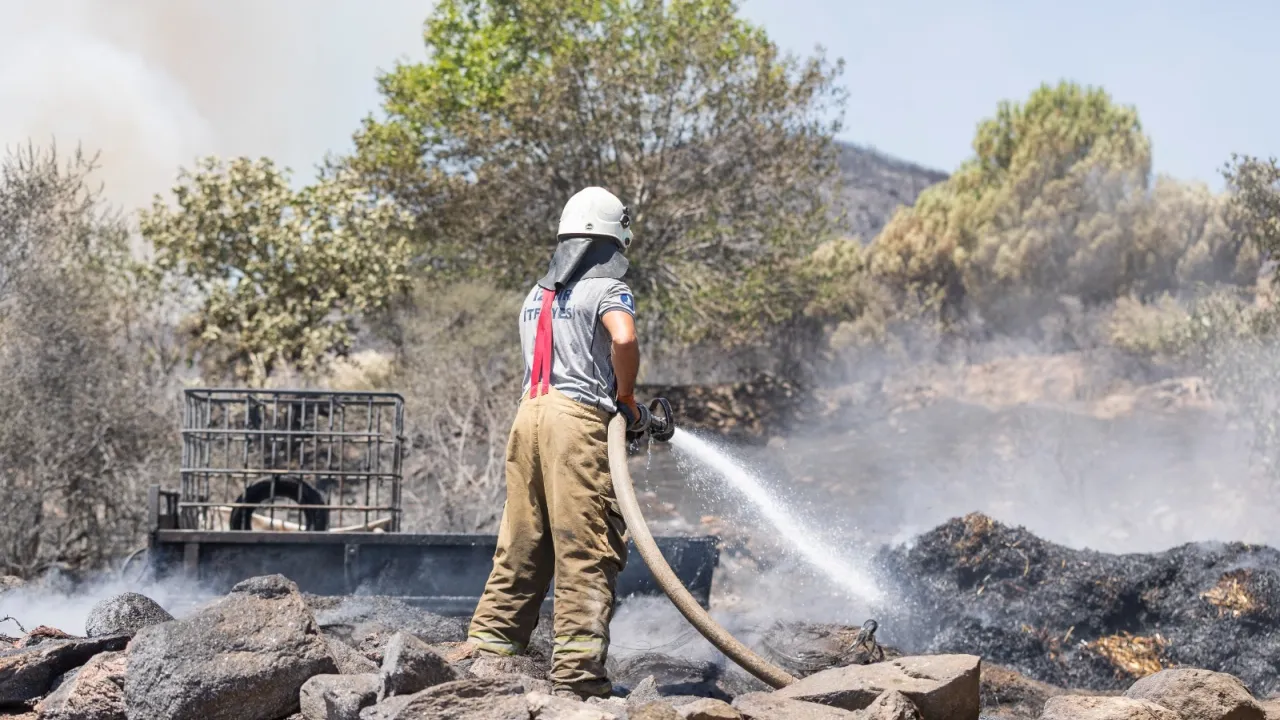İzmir Büyükşehir Belediyesi İtfaiye Dairesi Başkanlığı ekipleri, sıcaklıkların 40 dereceye ulaştığı İzmir’de yangın çıkmaması için yurttaşlara dikkatli olmaları çağrısında bulundu.İZMİR (İGFA) - İzmir Büyükşehir Belediyesi İtfaiye Dairesi Başkanlığı, termometrelerin 40 dereceleri gösterdiği İzmir için, kritik uyarılarda bulundu.