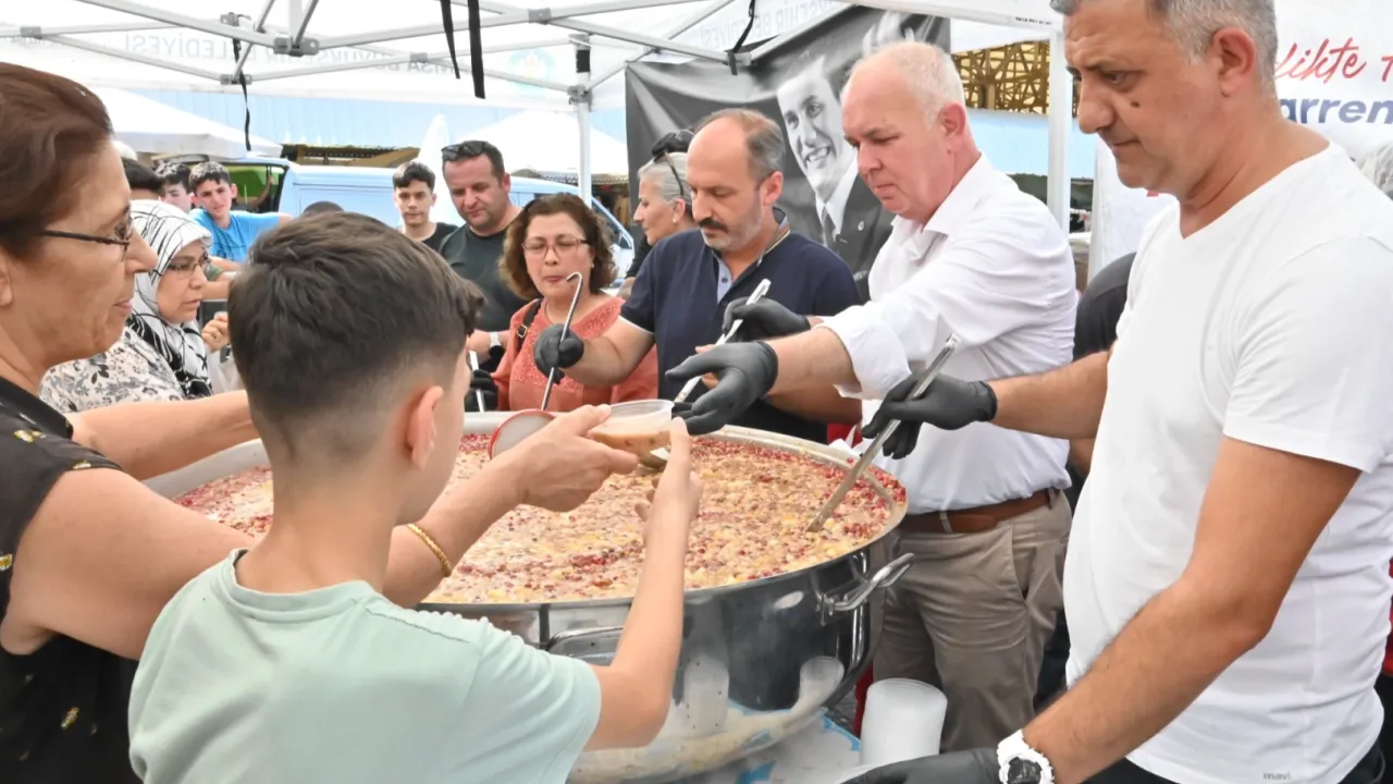 Manisa Büyükşehir Belediyesi, Muharrem Ayı’nın manevi atmosferinde, geleneksel hale getirdiği aşure ikramlarına bu yıl da devam ediyor.MANİSA (İGFA) - Şehrin farklı noktalarında sürdürülecek olan aşure dağıtımları, Manisa Büyükşehir Belediyesi Sosyal Hizmetler Dairesi Başkanlığı koordinesinde gerçekleştiriliyor. Sosyal Hizmetler Dairesi Başkanı Volkan Sert ile Esnaf ve Sanatkarlar Kredi ve Kefalet Kooperatifi Başkanı Destan Bulgay’ın da katıldığı programda, yapılan duaların ardından, özenle hazırlanan aşureler vatandaşlara ikram edildi. Paylaşmanın ve dayanışmanın güzelliğini yansıtan programda, Manisalılar hem bu anlamlı geleneği bir arada yaşamanın mutluluğunu paylaştı.